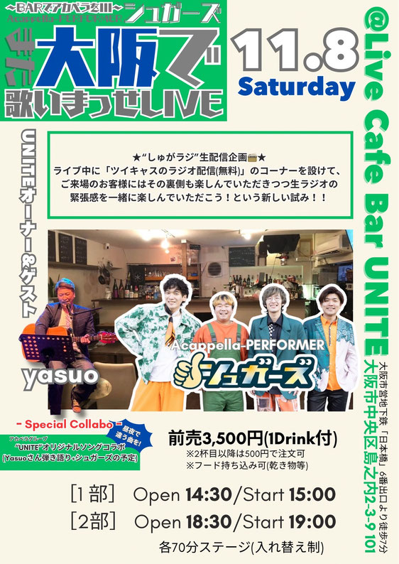 シュガーズ大阪で歌いまっせライブ~BARでアカペラをⅢ~